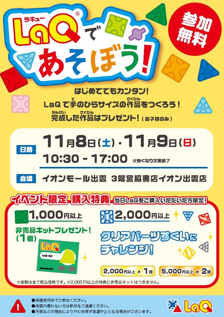 参加費無料♪「LaQであそぼう!」LaQ体験イベントinイオン出雲店
