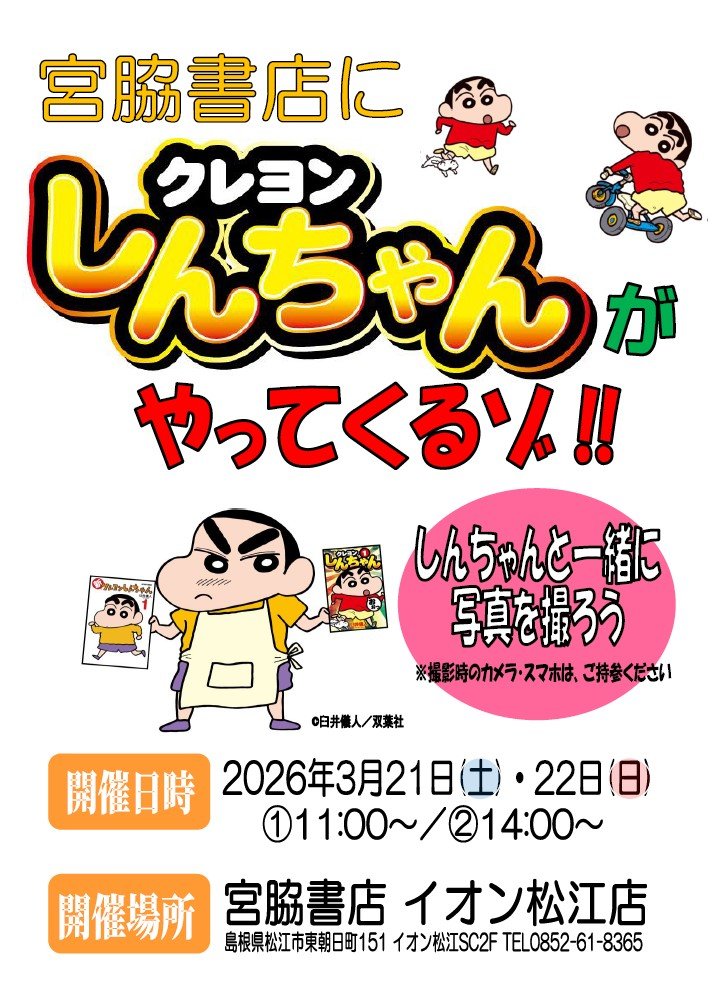 宮脇書店 イオン松江店にクレヨンしんちゃんがやってくる‼