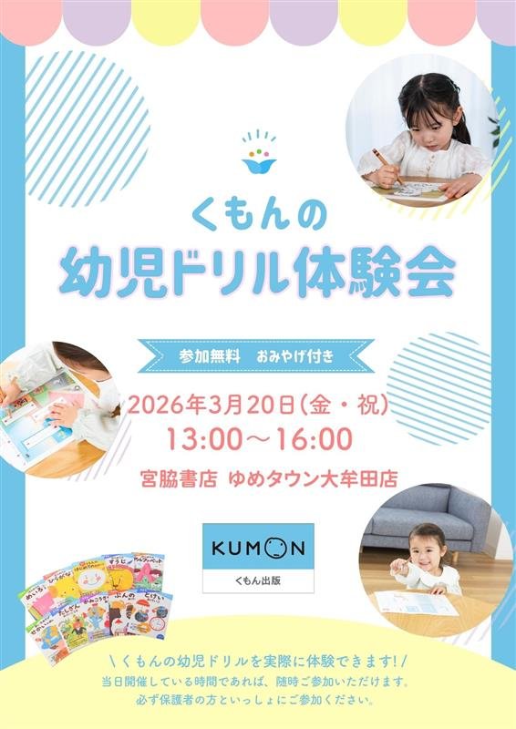 宮脇書店 ゆめタウン大牟田店にて くもんの幼児ドリル体験会開催!!
